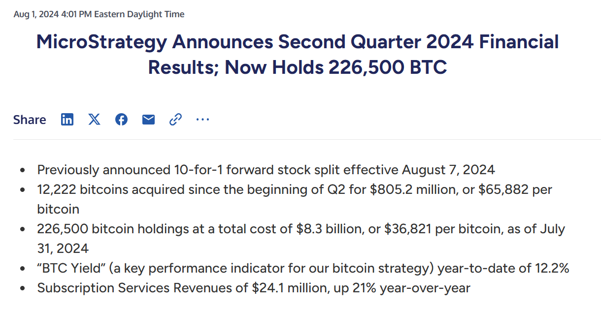 MicroStrategy Incorporated, recently renamed as Strategy, is the largest publicly traded corporate owner of Bitcoin, with 528,185 BTC purchased at an average price of $67,458, with total acquisition cost of $35.63 billion.