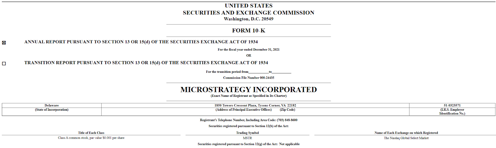 Microstrategy SEC filing